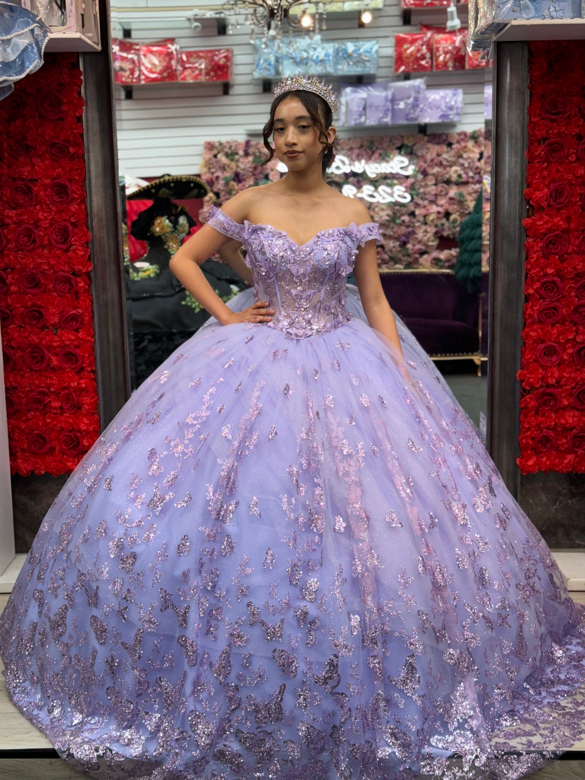Lilac butterfly quince dress