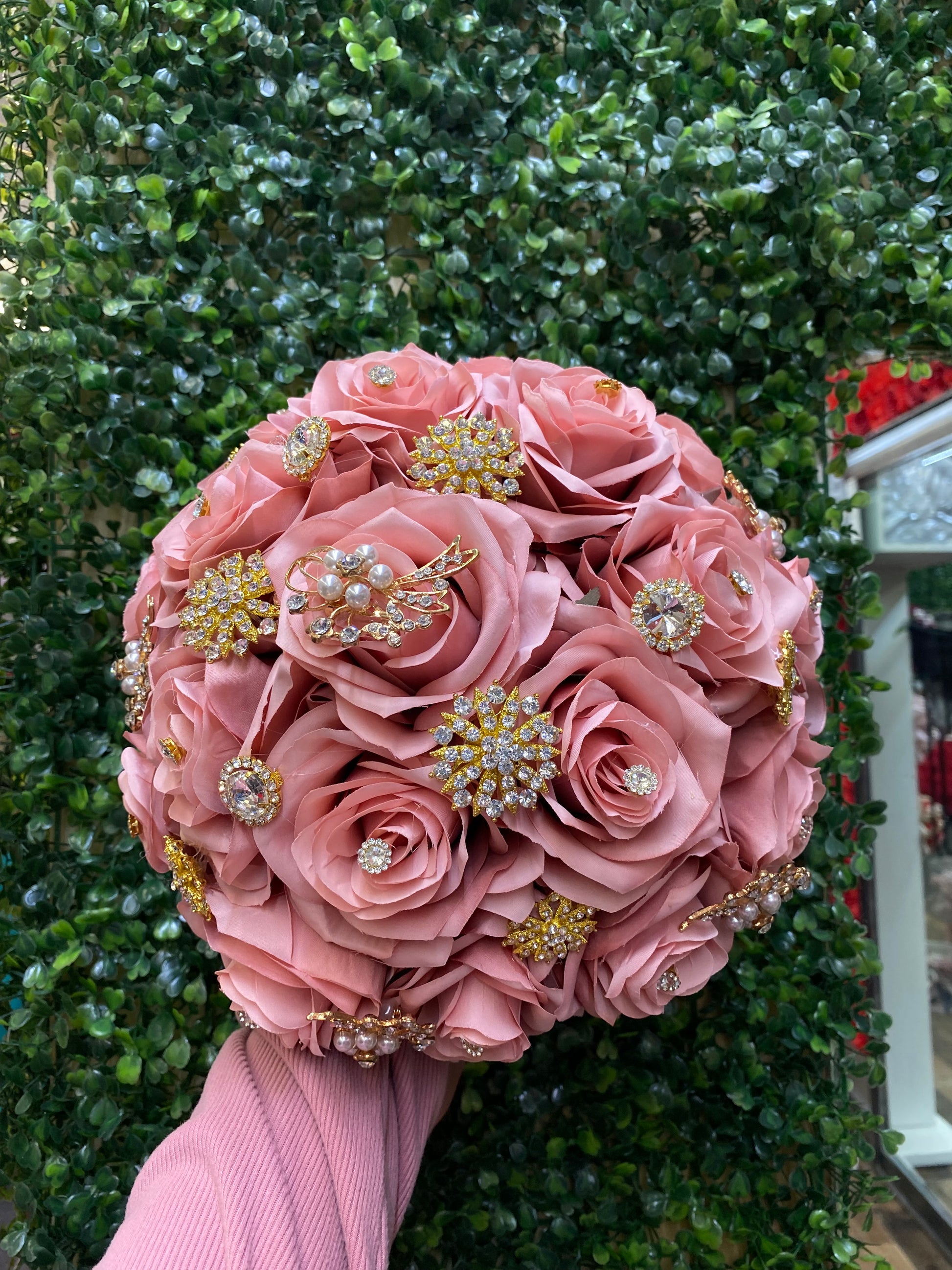 Pink with gold bouquets